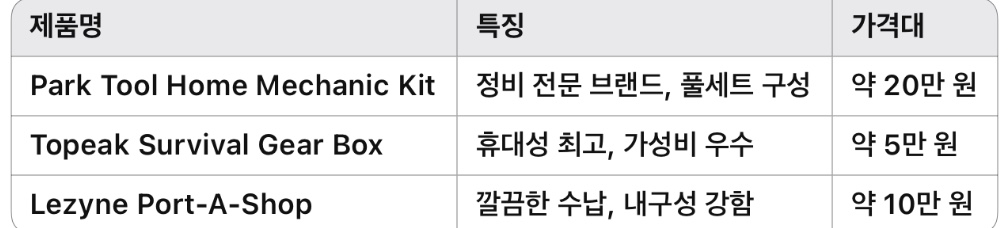 ✔ 정비 키트만 잘 갖추면 기본 점검과 수리를 스스로 해결할 수 있어 시간과 비용을 모두 절약할 수 있습니다.